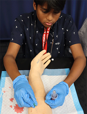 I learned how to draw blood using a phlebotomy arm simulator. Using this simulator allowed me to practice placing a needle in a vein to draw blood with realistic tissue-like material that imitates vein-wall resistance.