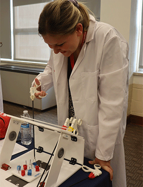 I learned how to draw blood using a phlebotomy arm simulator. Using this simulator allowed me to practice placing a needle in a vein to draw blood with realistic tissue-like material that imitates vein-wall resistance.