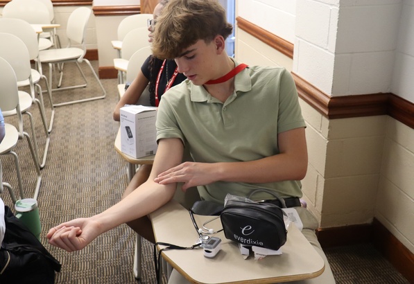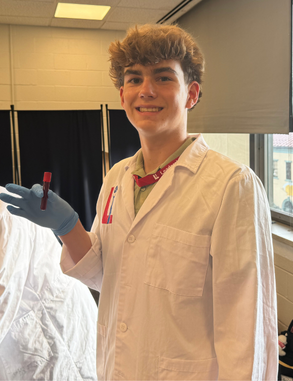 I trained in phlebotomy using a realistic arm simulator, practicing needle placement to draw blood from veins that mimic real vein-wall resistance.